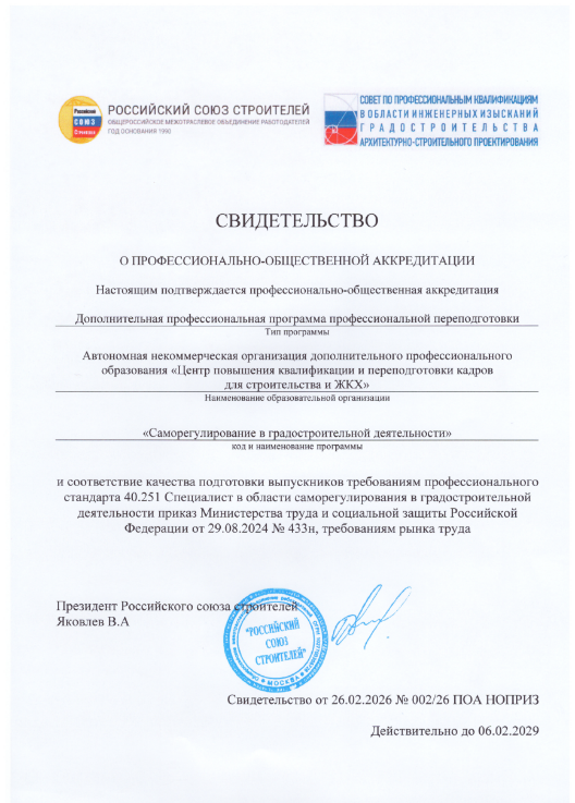Программа разработана в строгом соответствии с профессиональным стандартом "Специалист в области саморегулирования в градостроительной деятельности".